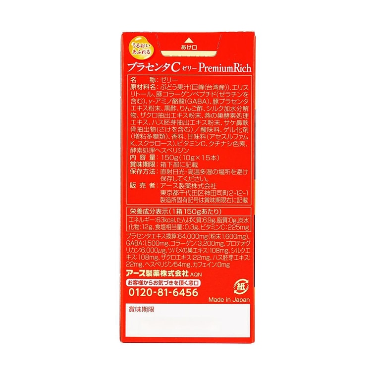 日本EARTH制药 胎盘素C果冻 高级浓厚 巨峰味 15条