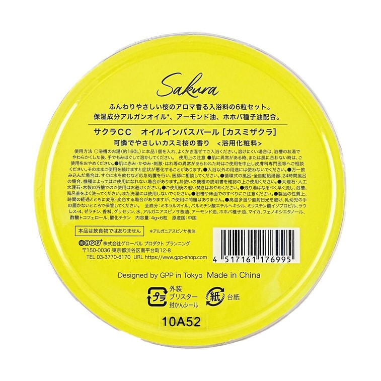 日本GPP 霞樱香油浴入浴珍珠 温润保湿 泡浴体验 4g*6颗