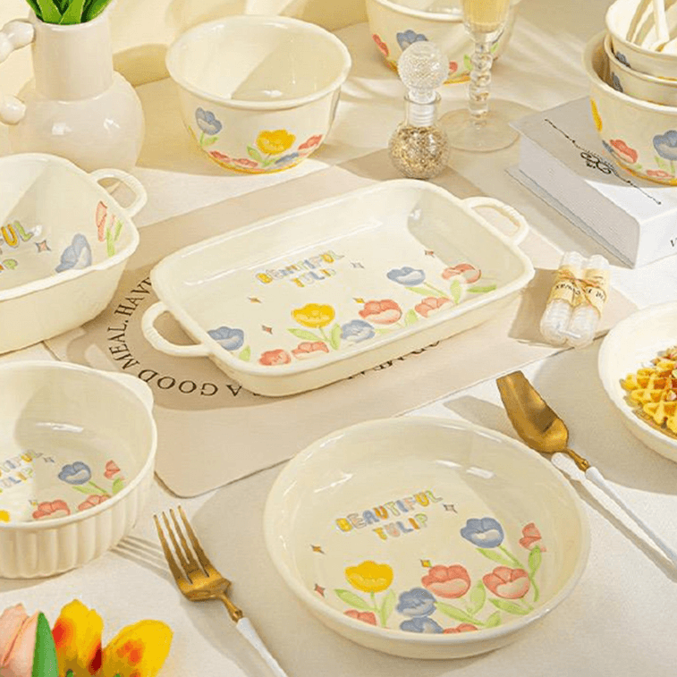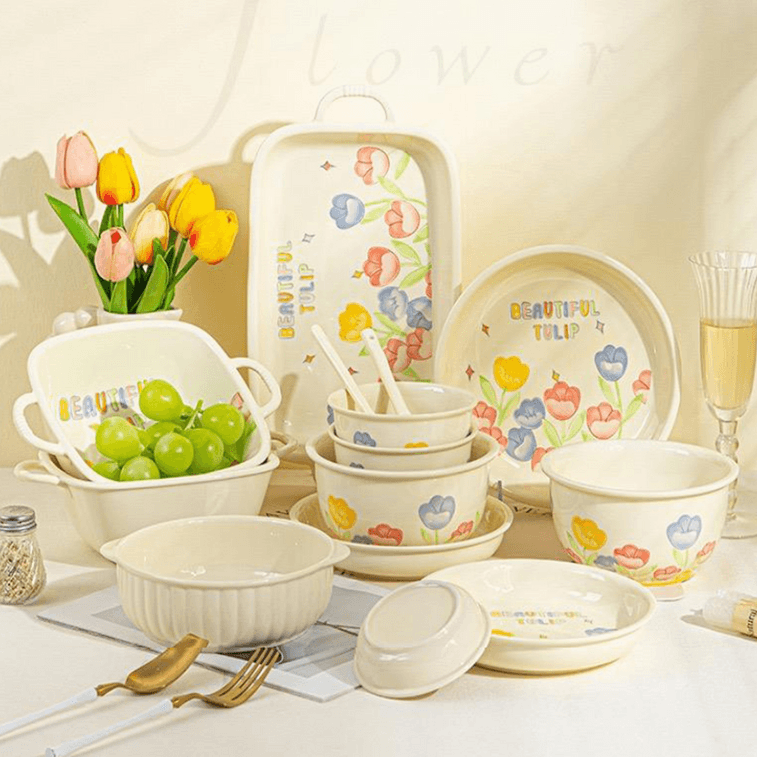 日式简约清新风搭配黄釉郁金香元素,营造惬意用餐氛围