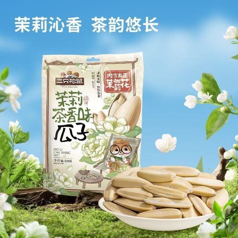 【中国直邮】 三只松鼠 瓜子茉莉花茶茶香瓜子大颗粒饱满袋装炒货休闲零食 108g | 亚米