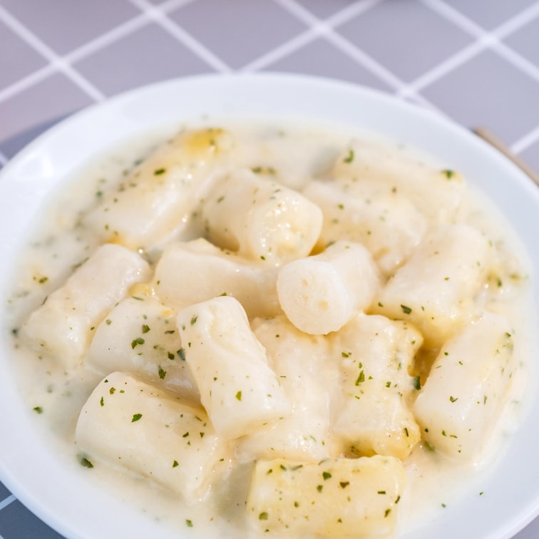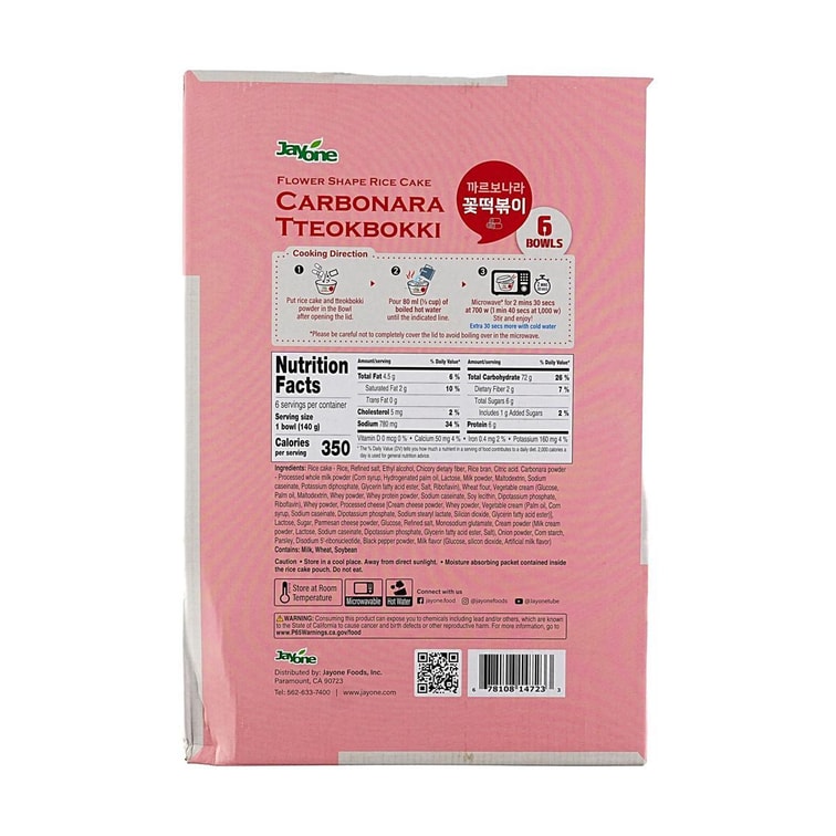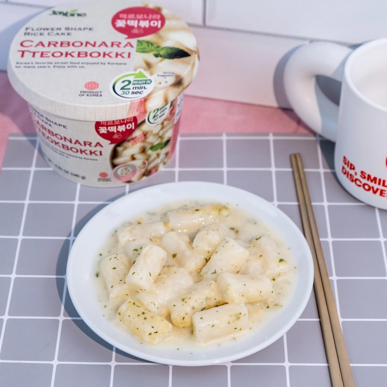 韩国JAYONE CARBONARA奶油芝士炒年糕 140g*6碗 整箱 【微波加热即食】【带孔花束形状年糕超吸汁】