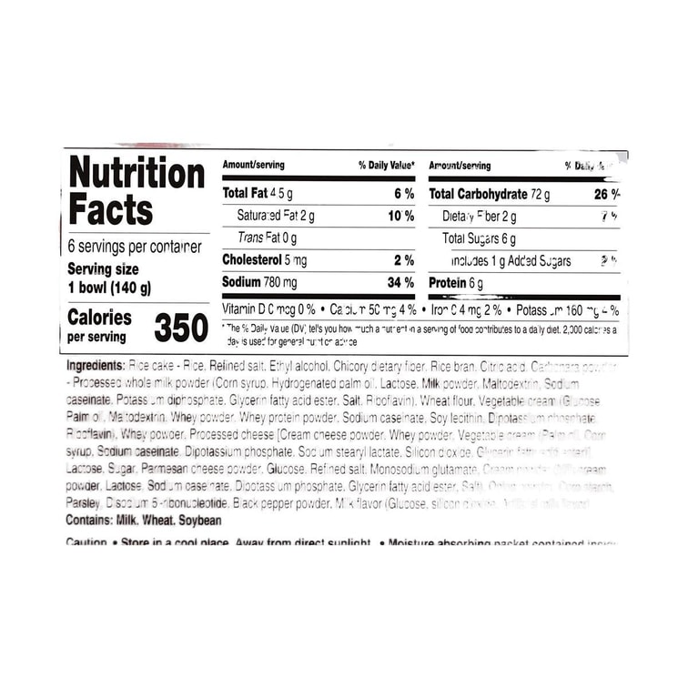 *免责声明:本页面所展示的营养成分信息来自商品包装,仅供参考。因包装版本、语言或拍摄方式不同,内容可能存在偏差或显示不完整,请以实际收到商品包装为准。如对成分、过敏原或适用人群有疑问,建议在使用前仔细阅读包装说明,或联系客服获取帮助。