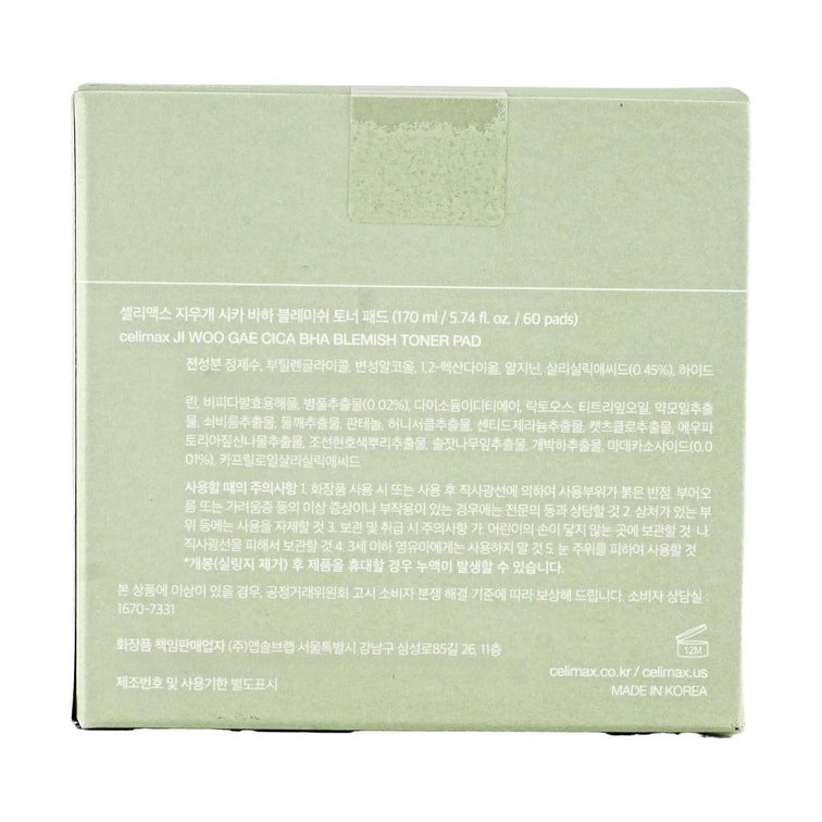 韩国CELIMAX 橡皮擦积雪草瑕疵清洁湿敷棉片 60片 镇静补水 皮脂角质护理 改善粗糙起皮 痘痘肌敏感肌适用 低刺激