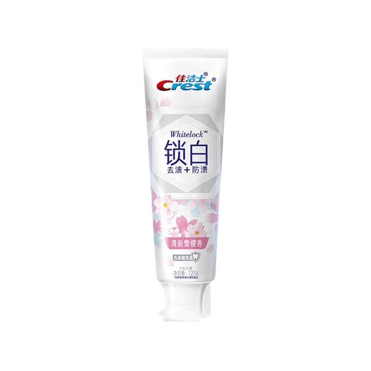 【中国直邮】佳洁士 牙膏3d炫白锁白清新雪樱味口气清新家庭装樱花美 120g*1支