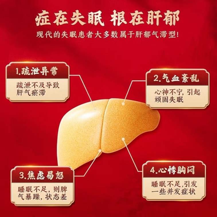 疏肝解郁,养心安神,改善睡眠,疏气滞解肝郁 焕发肝脏活力,养身静心安神 改善睡眠质量,摆脱安眠药依赖 好睡眠好身休