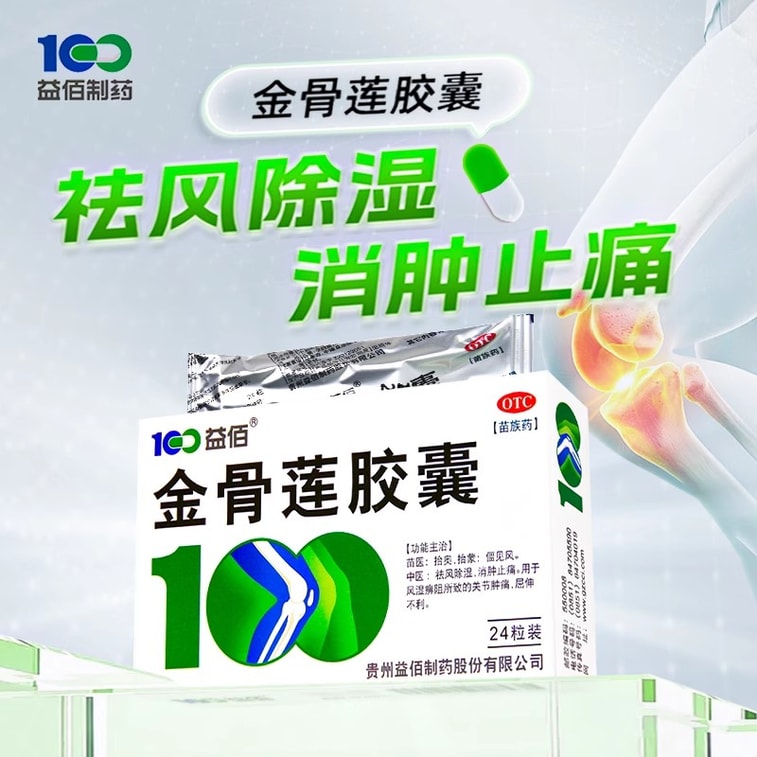 【中国直邮】 益佰 金骨莲胶囊 治疗风湿关节肿痛肿胀风湿痹阻屈伸不利24粒/盒