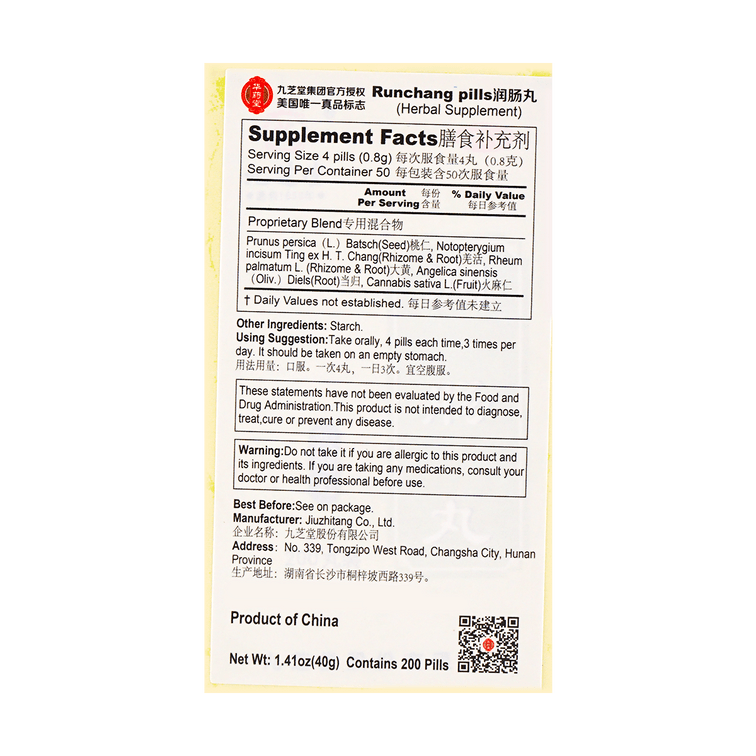 九芝堂润肠丸 浓缩丸 润肠通便 大便秘结 便秘 200片入