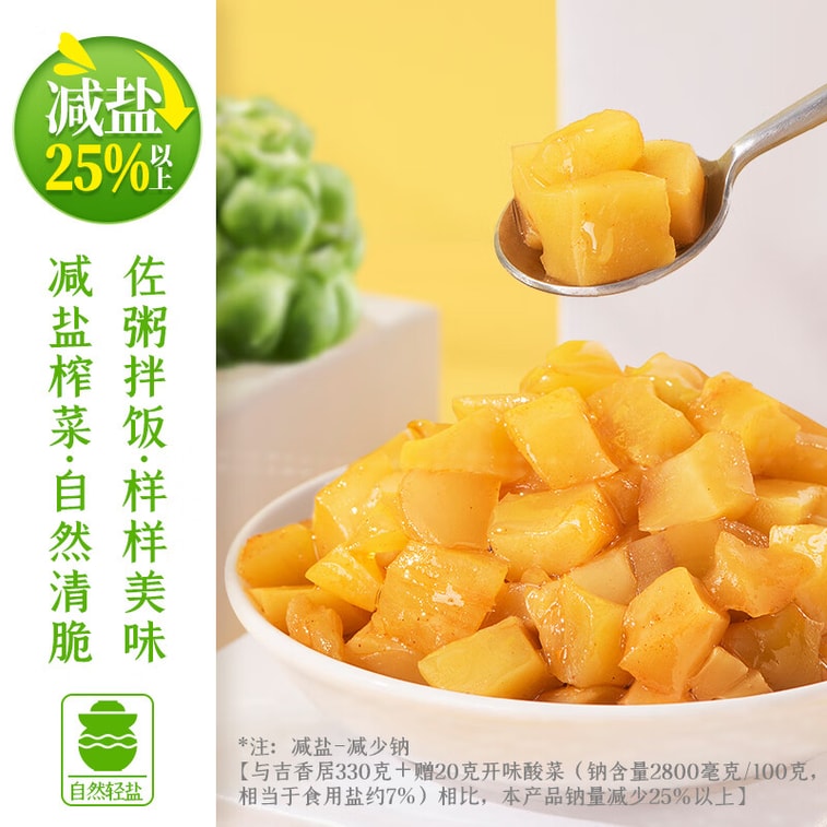 【中国直邮】 吉香居 榨菜真芯 减盐榨菜0添加脂肪 咸菜下饭菜佐餐清淡榨菜 25g*20袋