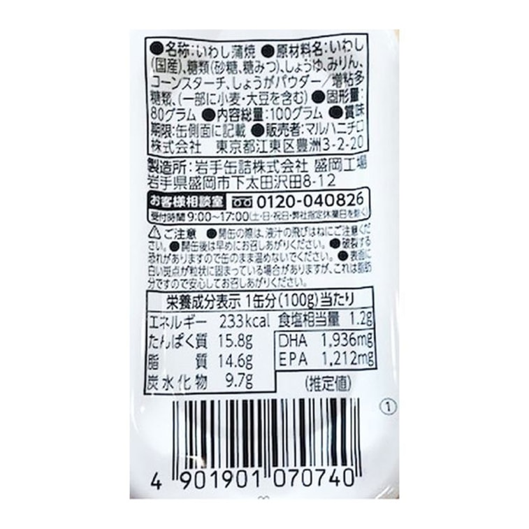 日本 MARUHA NICHIRO 玛鲁哈 蒲烧沙丁鱼罐头 100g