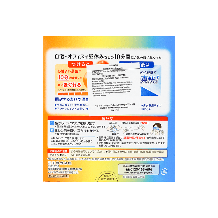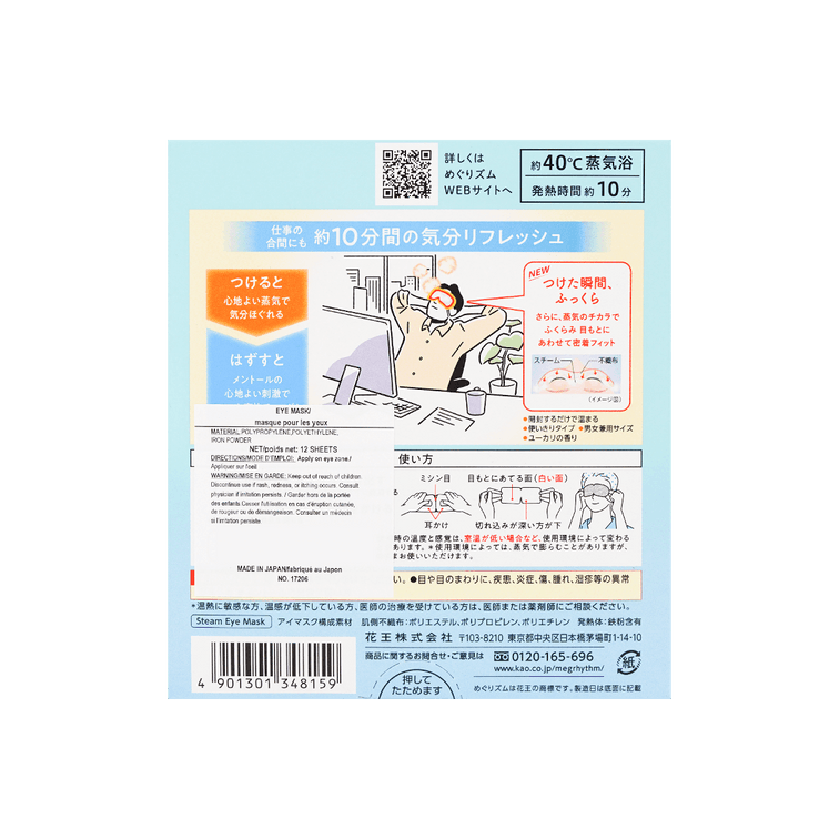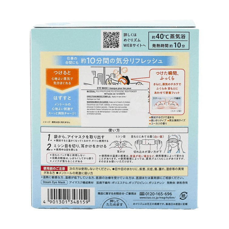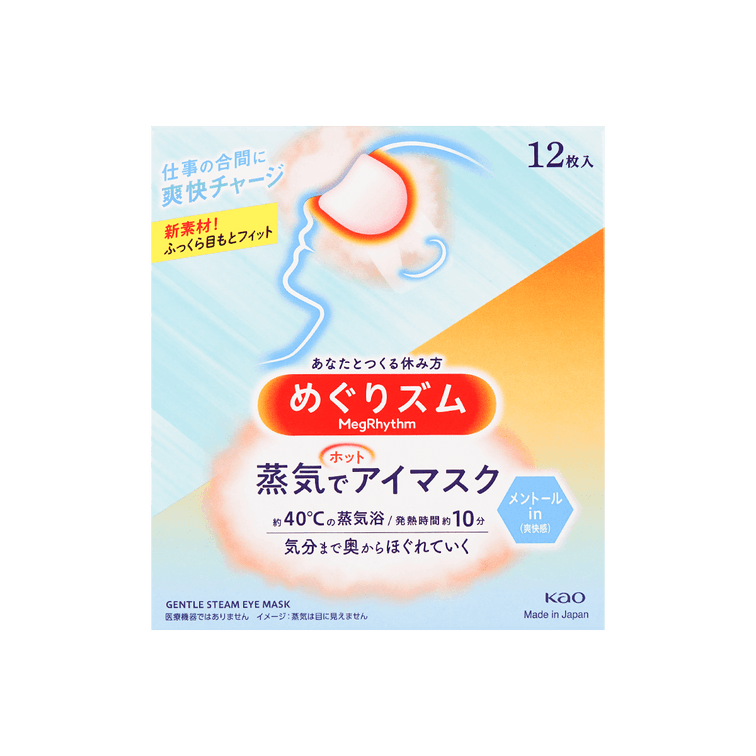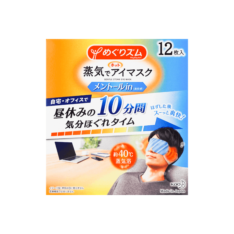 日本KAO花王 美舒律蒸汽眼罩 助眠透气 热敷护眼贴 缓解疲劳去黑眼圈 男士专用 #薄荷 12枚入【午休神器】