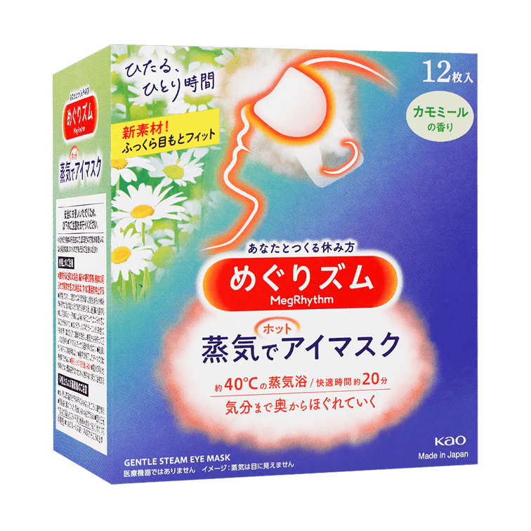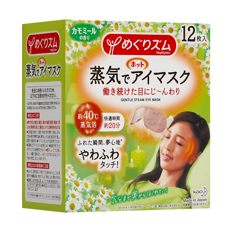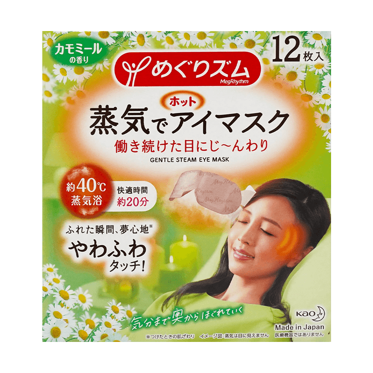 日本KAO花王 新版美舒律蒸汽眼罩 助眠透气 热敷护眼贴 缓解疲劳去黑眼圈 #洋甘菊香型 12枚入 包装随机发送