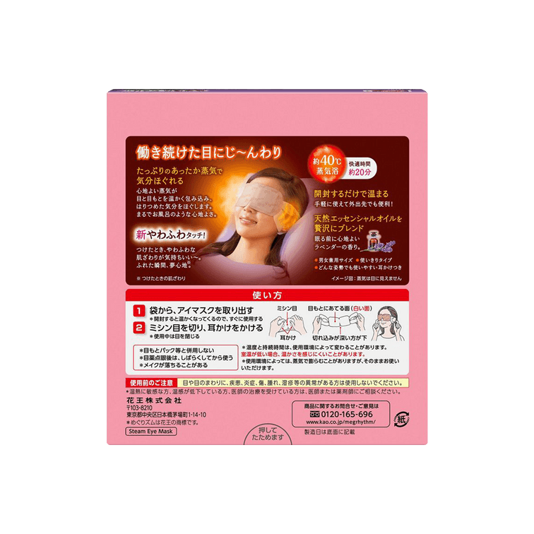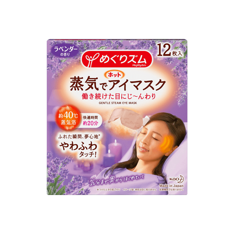 日本KAO花王 美舒律蒸汽眼罩 助眠透气 热敷护眼贴 缓解疲劳去黑眼圈 #薰衣草香型 12枚入 包装随机发送