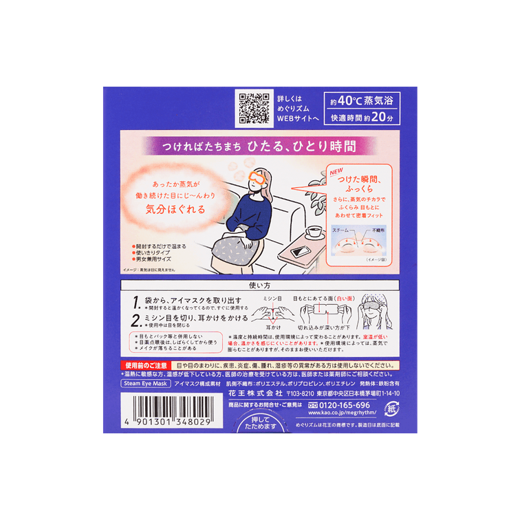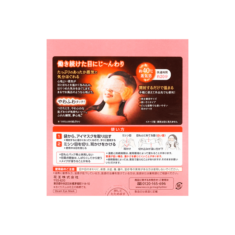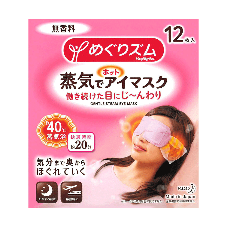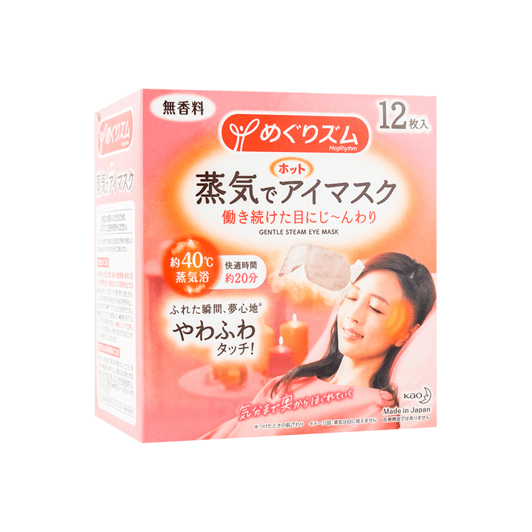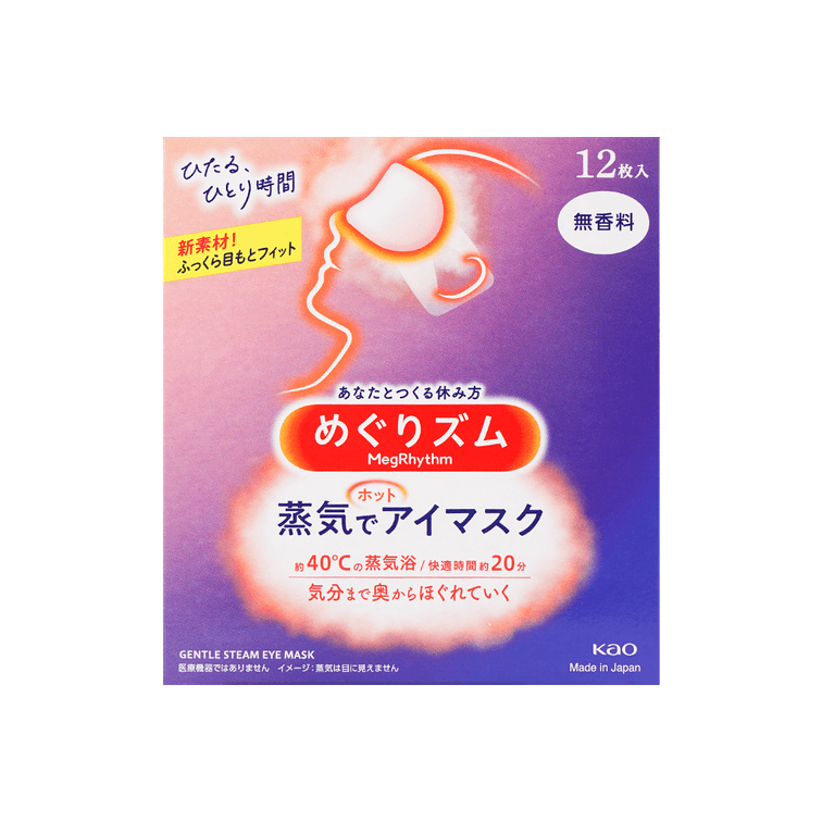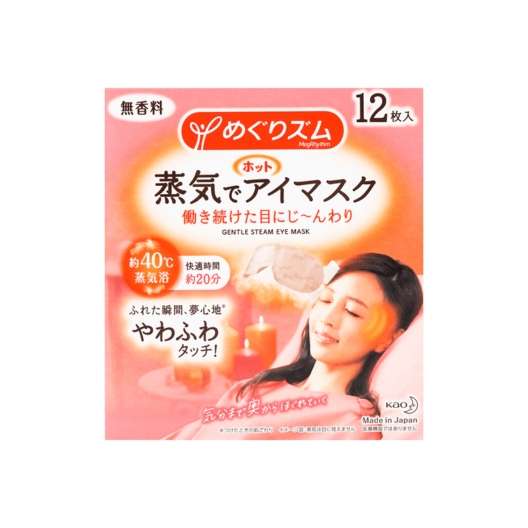 日本KAO花王 新版美舒律蒸汽眼罩 助眠透气 热敷护眼贴 缓解疲劳去黑眼圈 #无香型 12枚入 包装随机发送