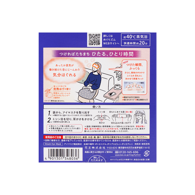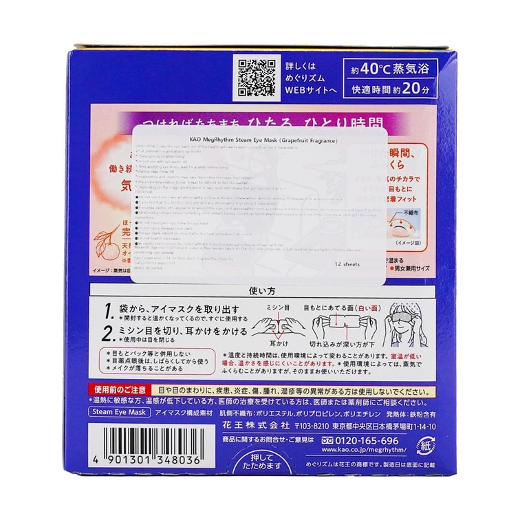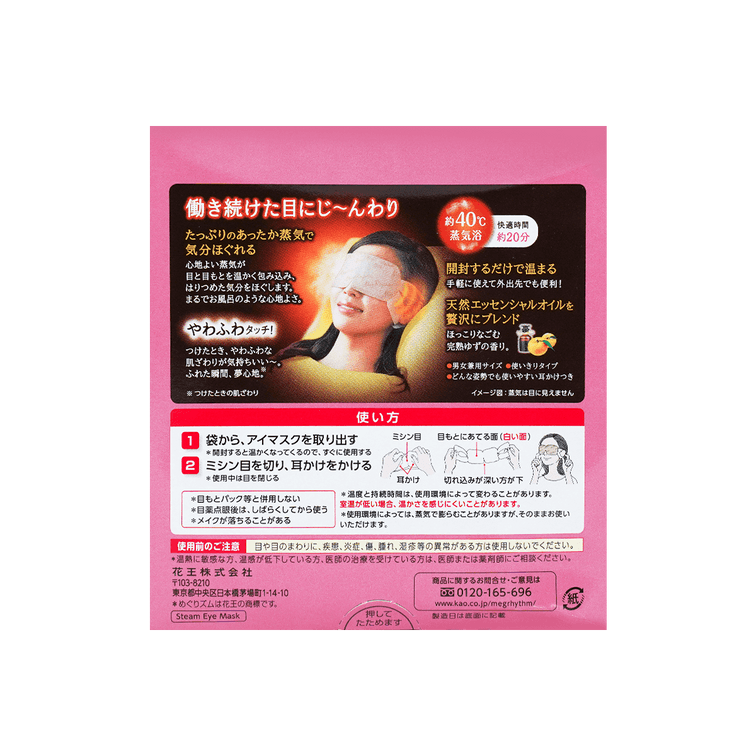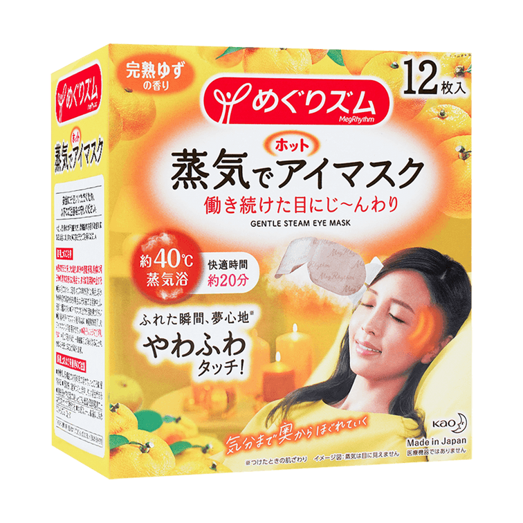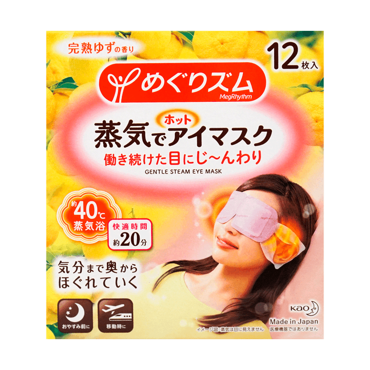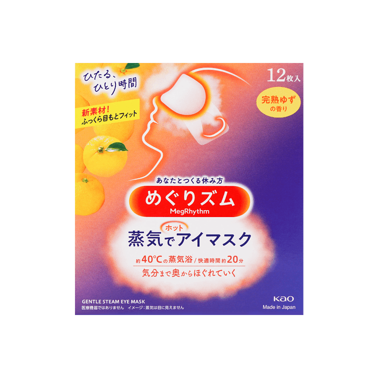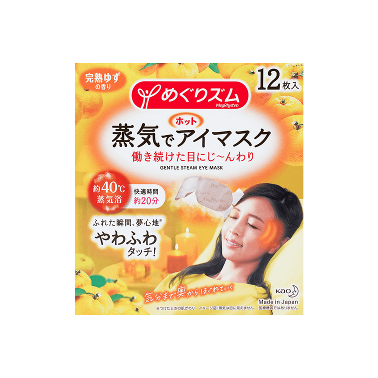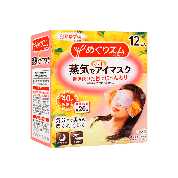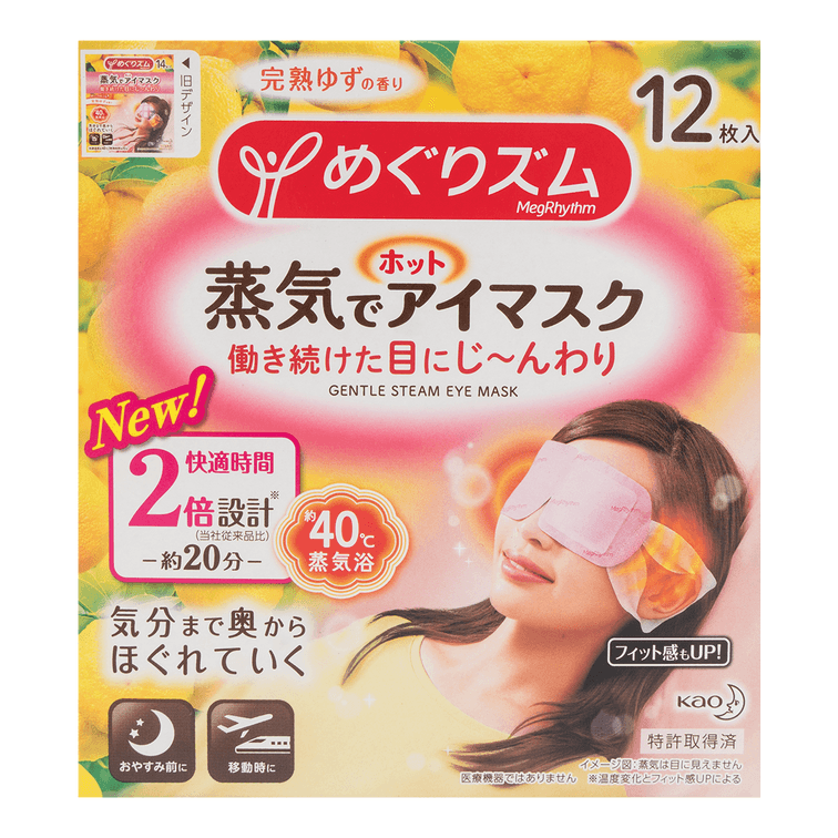日本KAO花王 新版美舒律蒸汽眼罩 助眠透气 热敷护眼贴 缓解疲劳去黑眼圈 #柚子香型 12枚入 包装随机发送