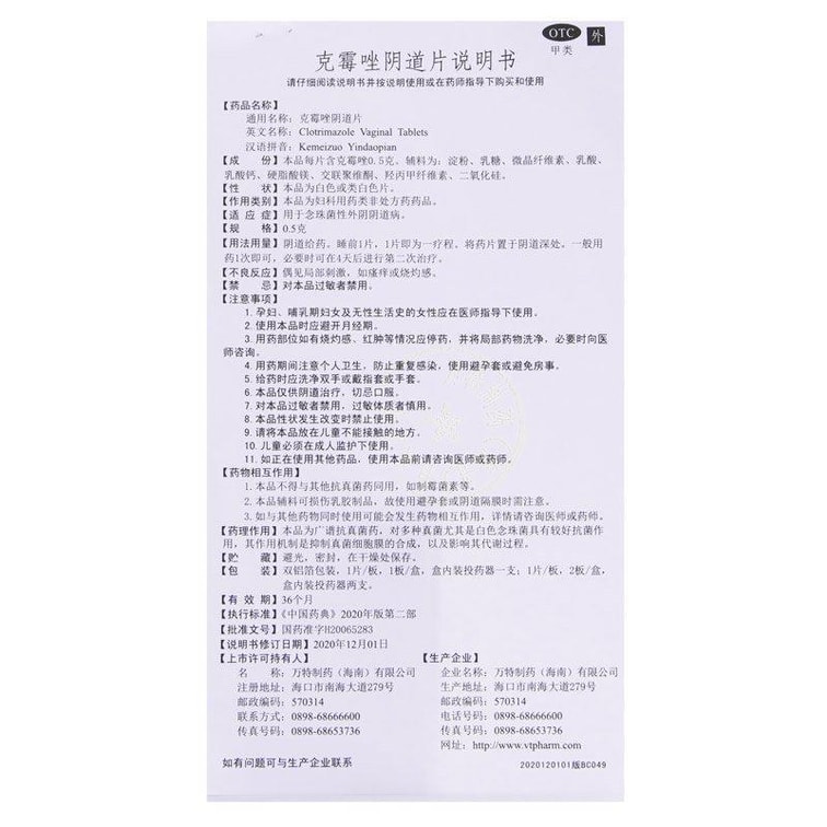 【中国直邮】 凯妮汀 克霉唑阴道片 1粒装