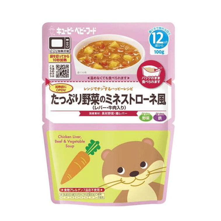 【日本直邮】 日本 KEWPIE 丘比 宝宝婴幼儿辅食粥 100克 蔬菜鸡肝牛肉 即食泥便携饭