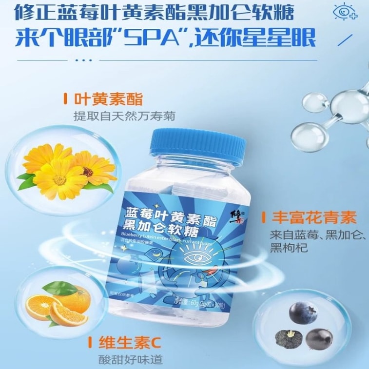 【中国直邮】 修正 叶黄素蓝莓味酯软糖片 30 粒 / 瓶 好吃不抗拒 非专利非进口儿童成人护眼神器