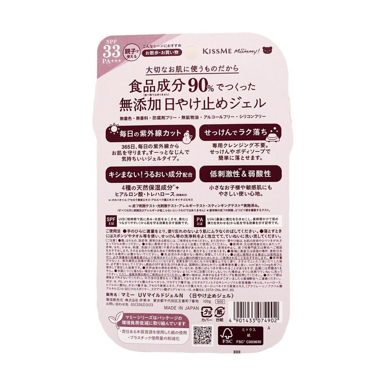 日本KISSME奇士美 亲子温和防晒啫喱 UV SPF 33 PA+++