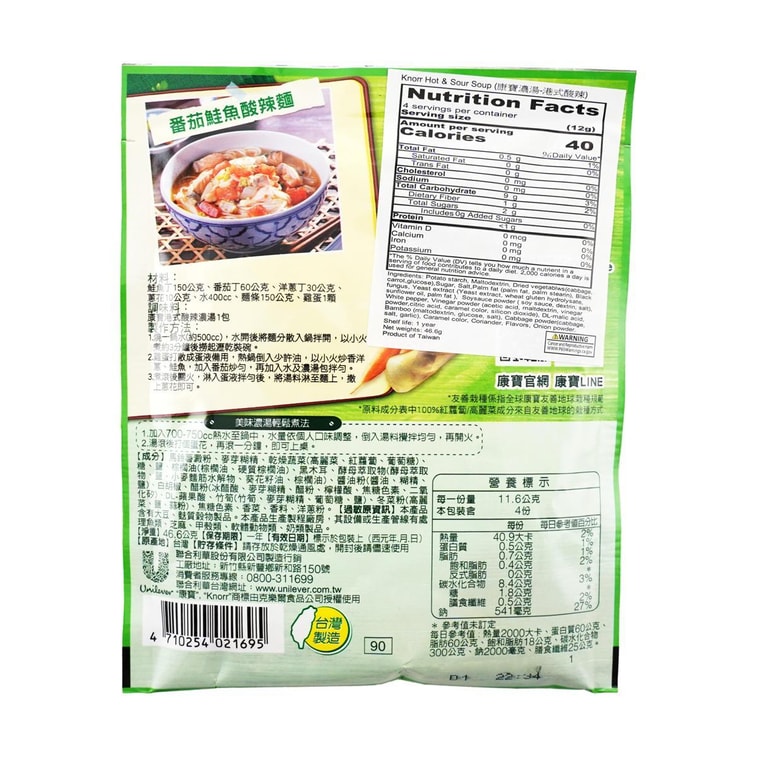 台湾康宝 浓厚酸辣系列 港式酸辣浓汤 46.6g