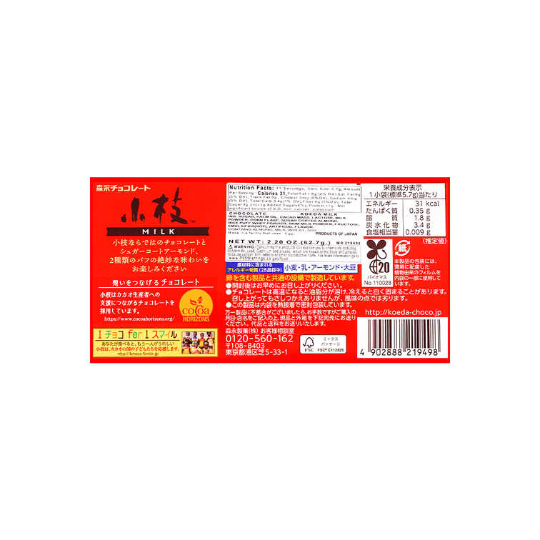 日本MORINAGA森永 小枝 坚果牛奶巧克力饼干棒 11包入 62.7g