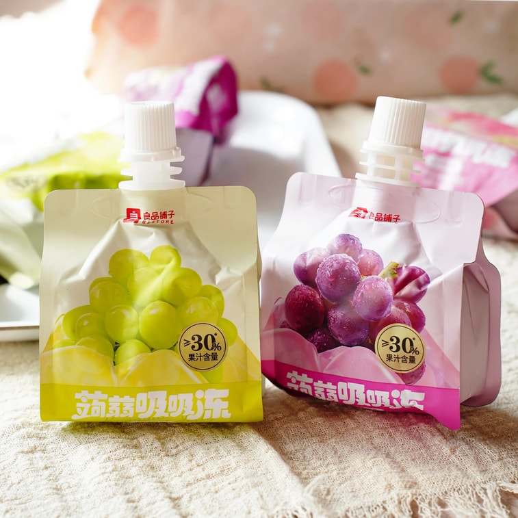 良品铺子 蒟蒻吸吸果冻 青提味+白桃味+葡萄味 6包入 540g【果汁含量≥30%】 | 亚米