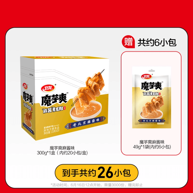 【中国直邮】 卫龙 魔芋爽魔芋素毛肚麻酱味辣条辣味零食49g*26袋
