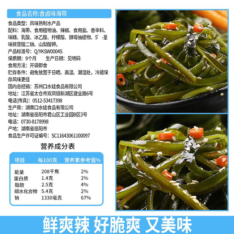 【中国直邮】口水娃 香卤海带丝辣即食裙带菜海带海味零食小吃15包 300g*1袋装