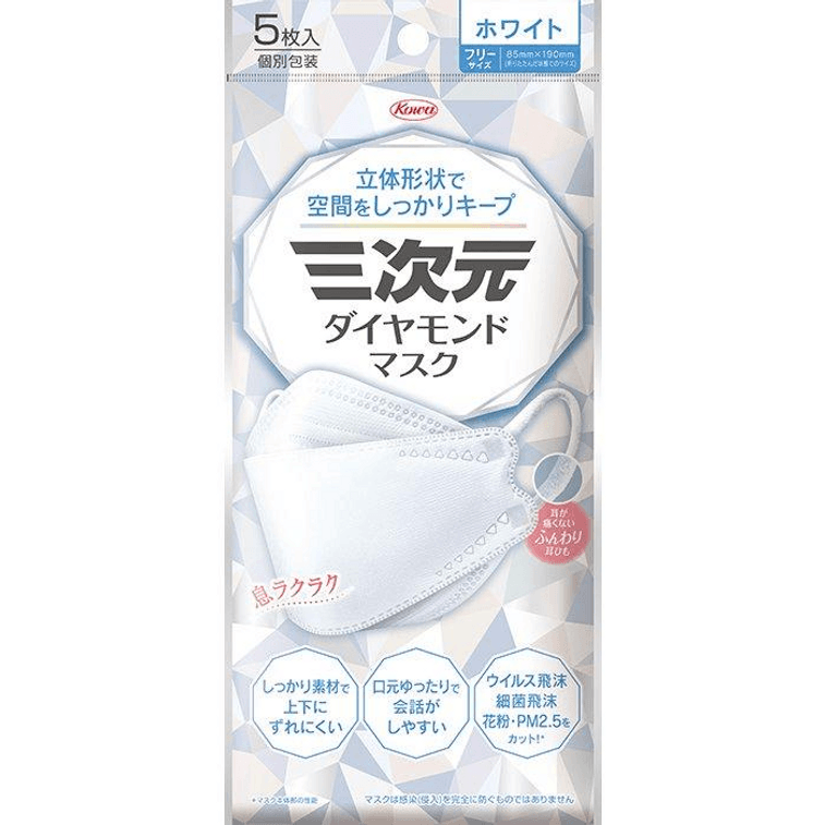【日本直邮】 日本 KOWA 兴和制药 三次元钻石口罩 5片 柔软透气防过敏
