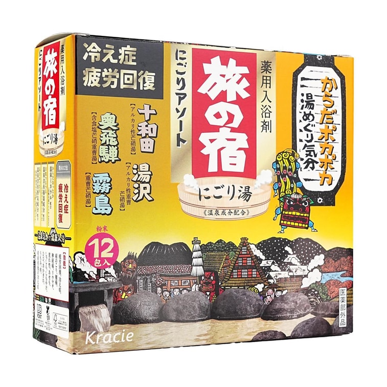 日本KRACIE嘉娜宝 旅之宿系列 药用入浴剂浴盐 温泉成分配合 4款香型 12包入 【乳浊汤组合系列】 | 亚米