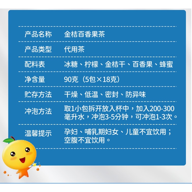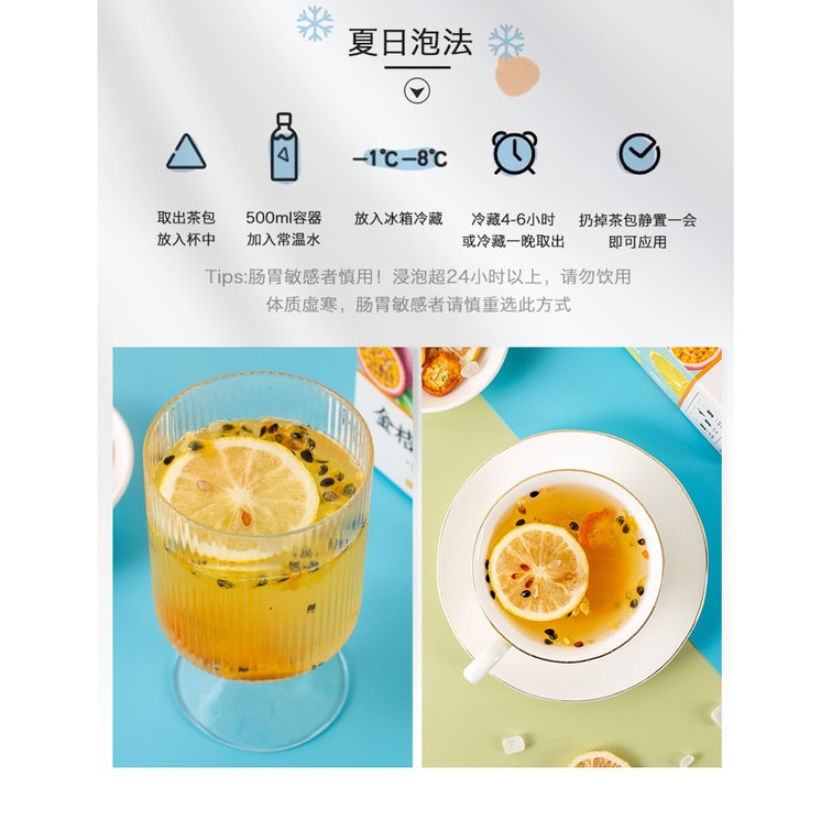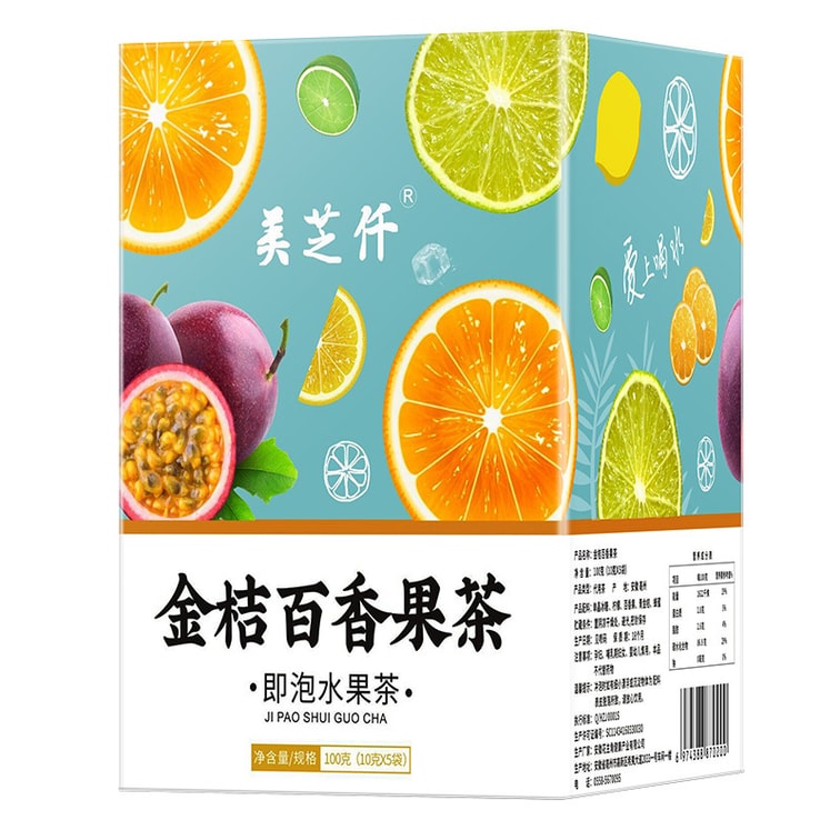 美芝仟 金桔百香果茶 网红水果茶 冷泡茶 冻干柠檬片蜂蜜百香果青桔茶 5袋*18克 独立装