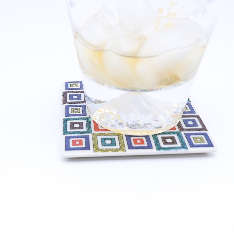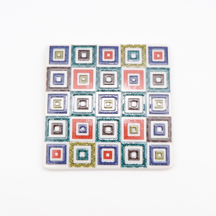 日本九谷烧手工制作的方形杯垫(瓷砖3.54 x 3.54英寸)
