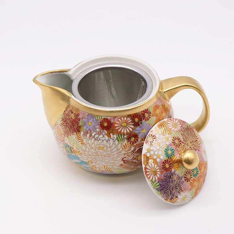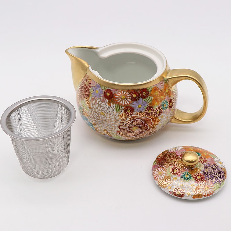 日本 KUTANIYAKI 九谷烧 金花纹 茶壶 12 盎司