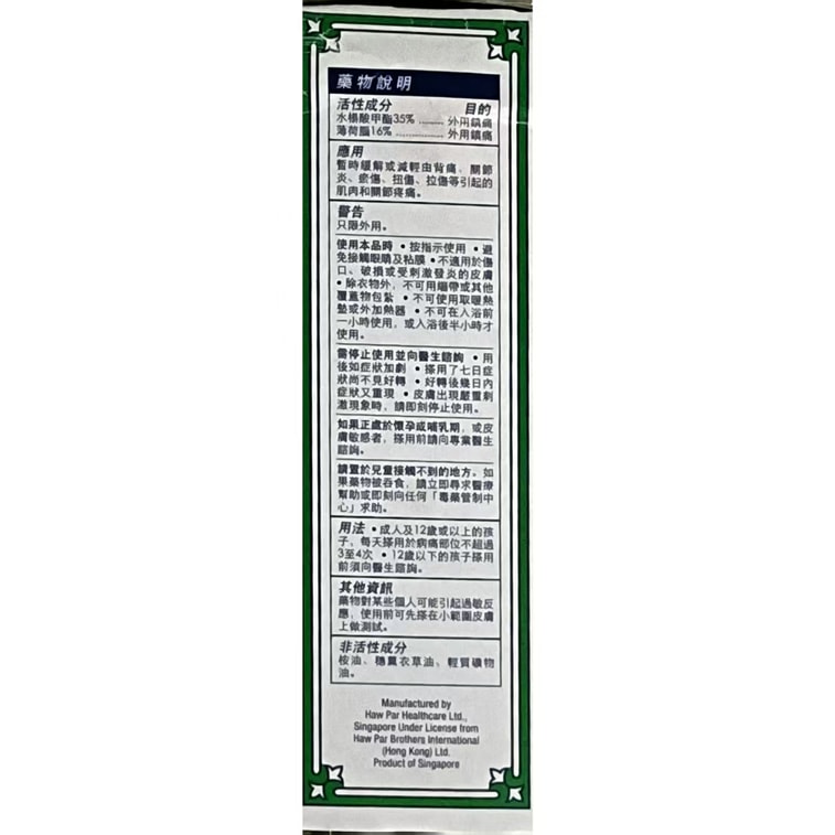 功能 暂时缓解轻微肌肉疼痛 缓解单纯性背痛和关节炎的疼痛 有助于缓解扭伤、拉伤和擦伤 帮助缓解肌肉和关节疼痛 有助于缓解受伤引起的疼痛