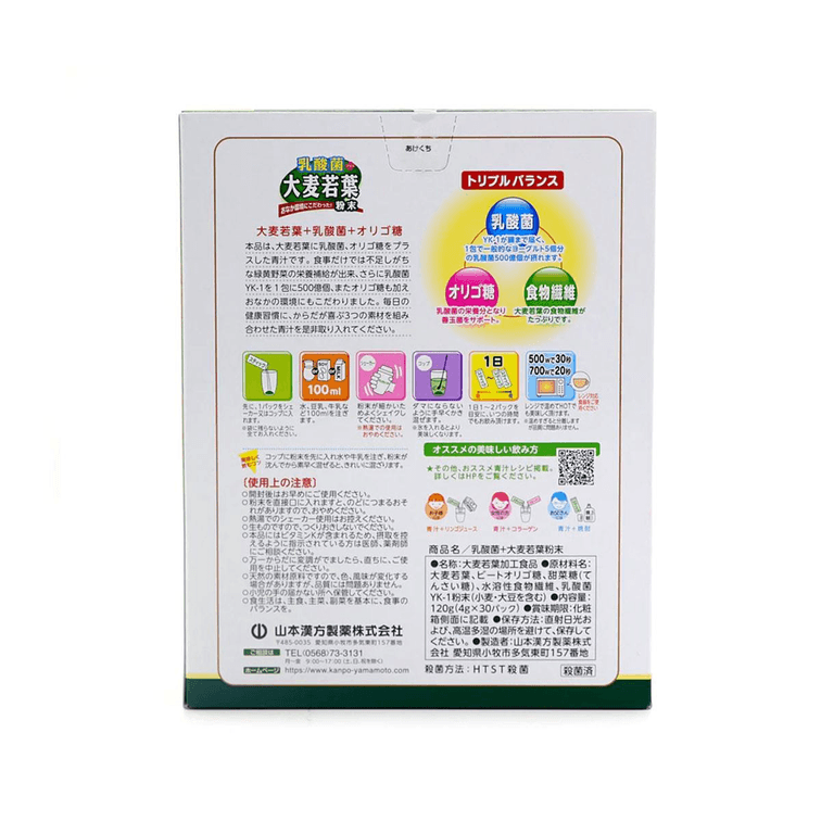 【日本直邮】YAMAMOTO山本汉方制药 乳酸菌大麦若叶排毒润肠通便青汁4g*15袋