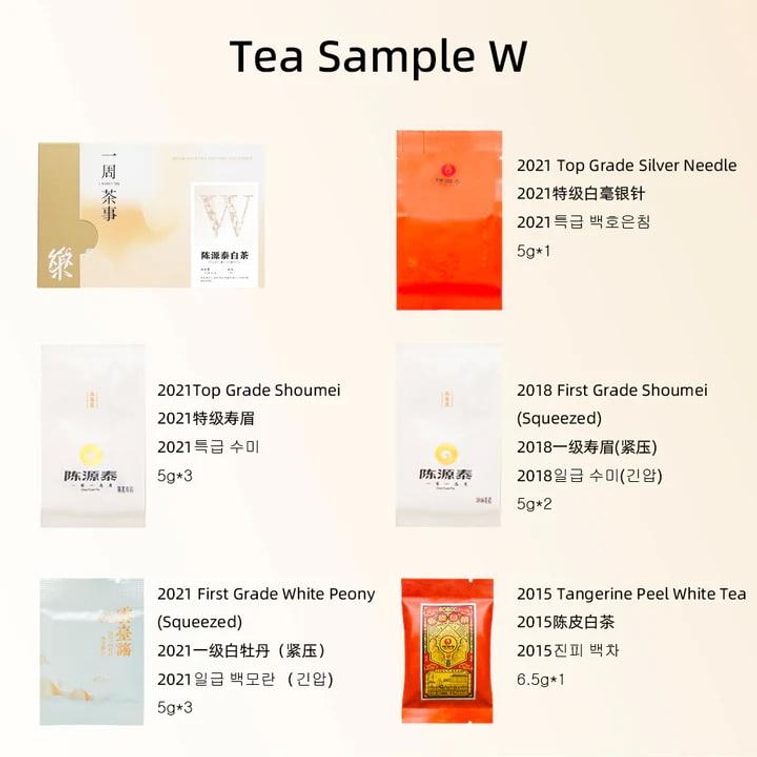 乐普山茶 【试饮合集W】 经典5款10泡陈源泰福鼎白茶品鉴组合 含白毫银针/白牡丹/寿眉等经典款 51.5g