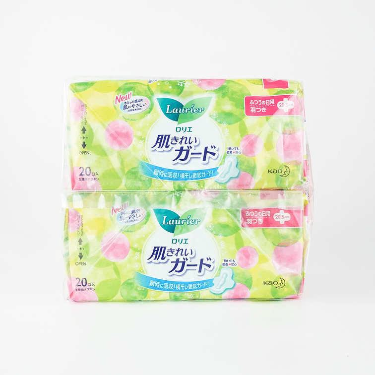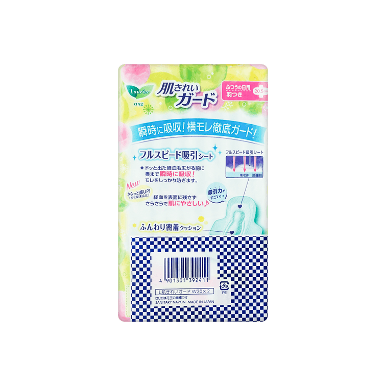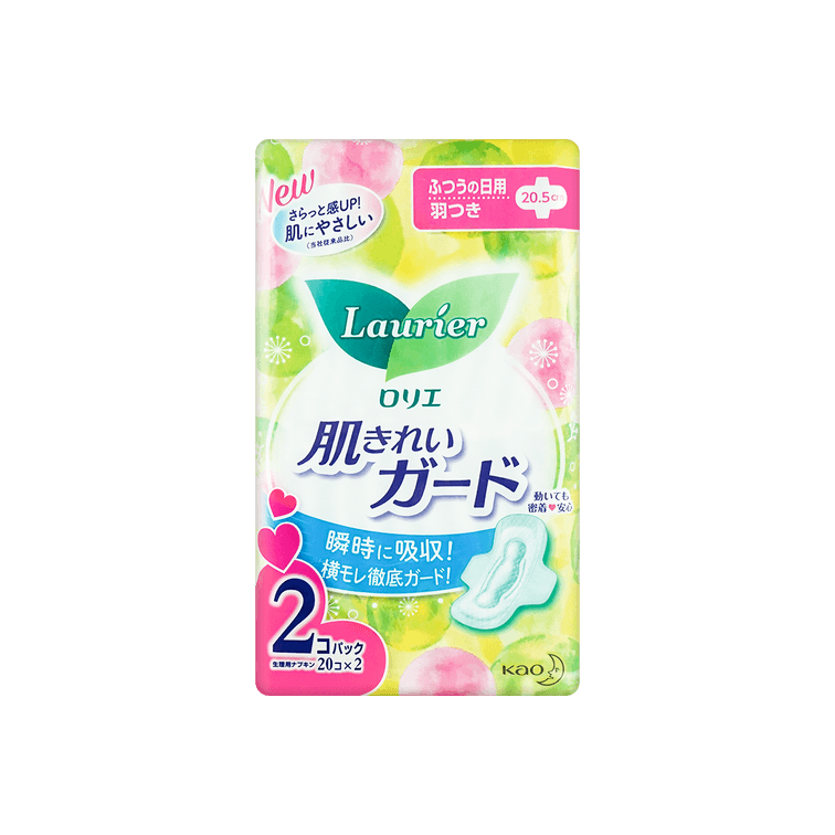日本KAO花王 LAURIER乐而雅 H美肌瞬吸收系列 有翼棉柔日用卫生巾 瞬吸不沾肤 205mm 20片*2