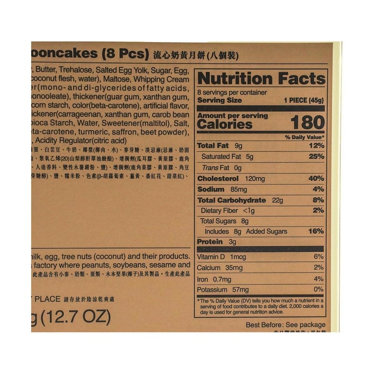 *免责声明:本页面所展示的营养成分信息来自商品包装,仅供参考。因包装版本、语言或拍摄方式不同,内容可能存在偏差或显示不完整,请以实际收到商品包装为准。如对成分、过敏原或适用人群有疑问,建议在使用前仔细阅读包装说明,或联系客服获取帮助。