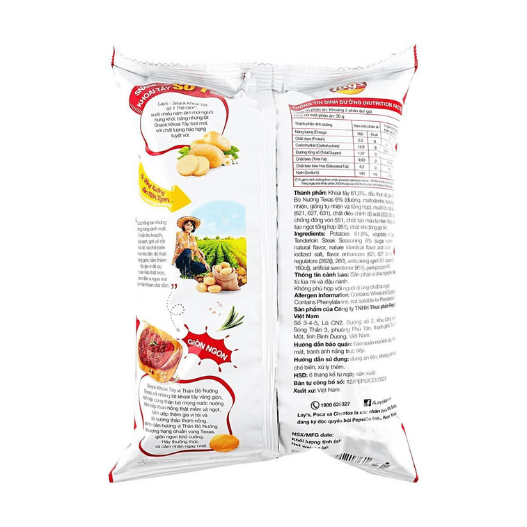 越南版LAY'S乐事 德州嫩牛排味薯片 53g【浓郁肉香】