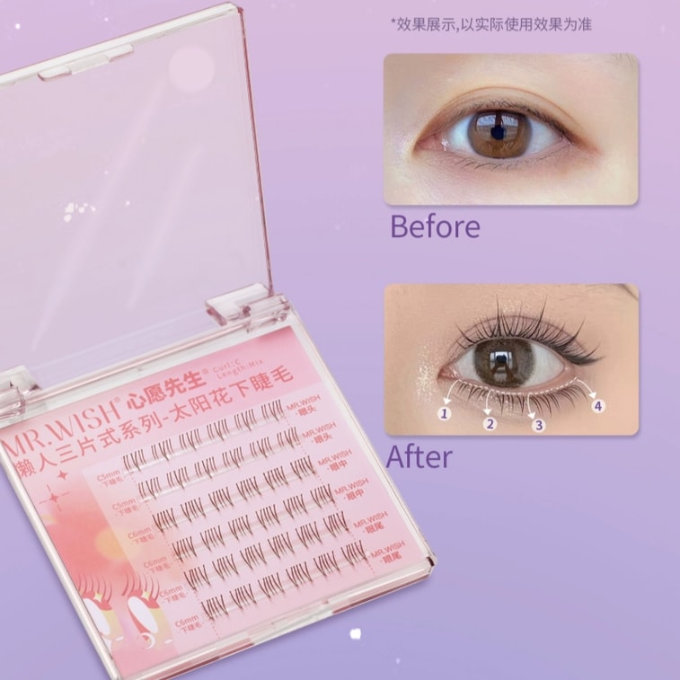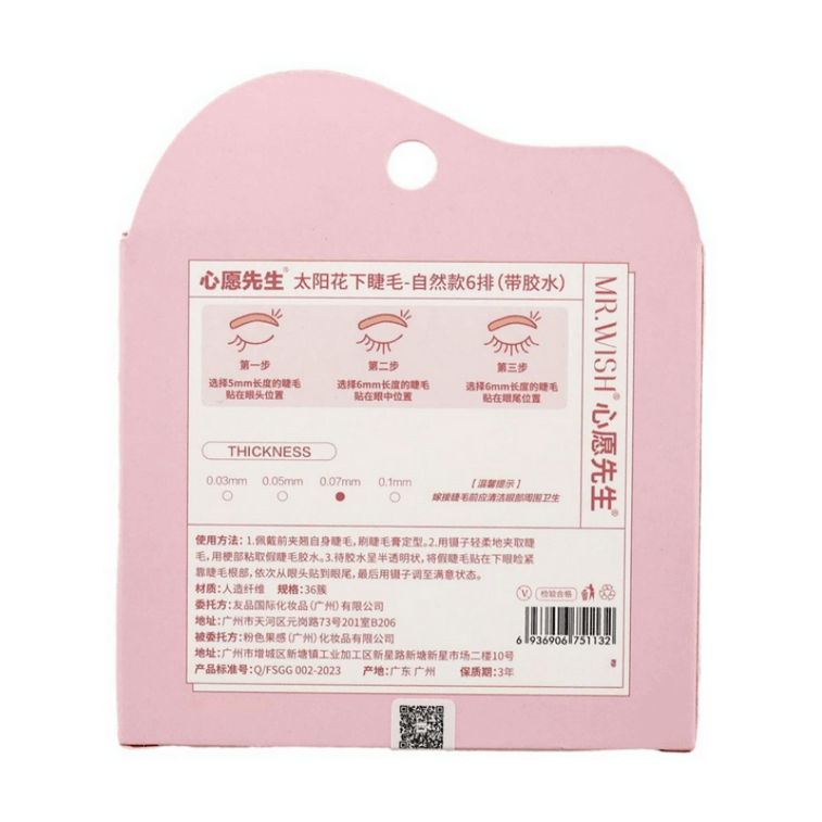 心愿先生 懒人三片式假睫毛 太阳花下睫毛-自然款6排 (内赠胶水)