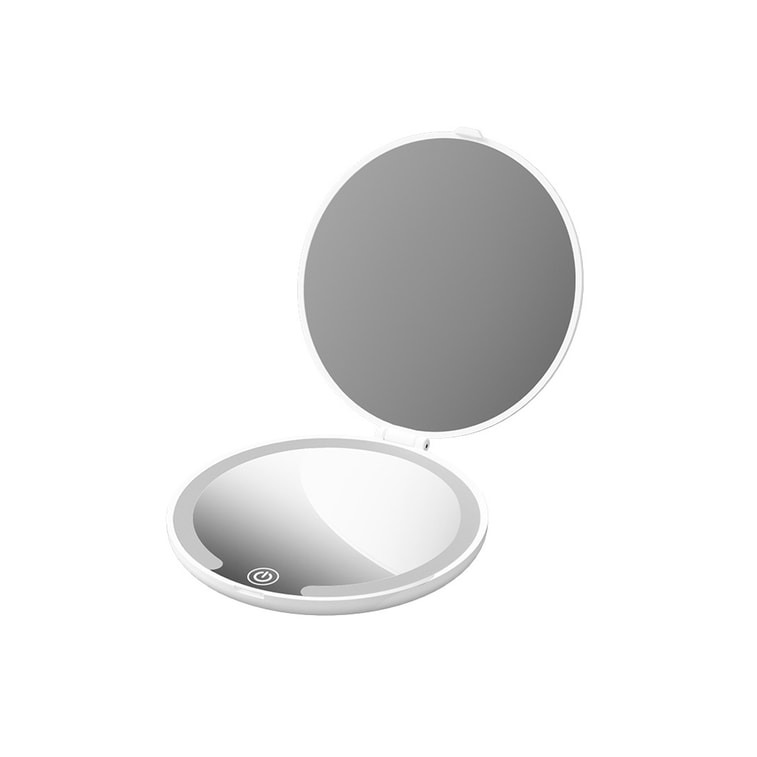 【中国直邮】 HSPM Led化妆镜便携折叠翻盖镜子随身补妆镜充电旅行迷你镜子 珍珠白