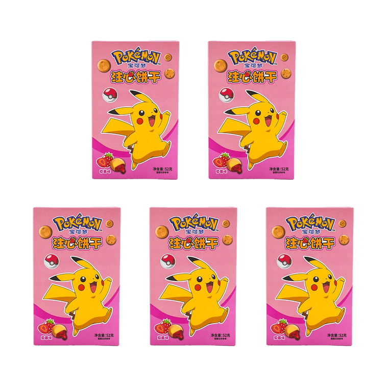 乐达学糖 POKEMON宝可梦 注心饼干 草莓味 52g*5盒【超值装】【动漫好物】【可爱皮卡丘造型】