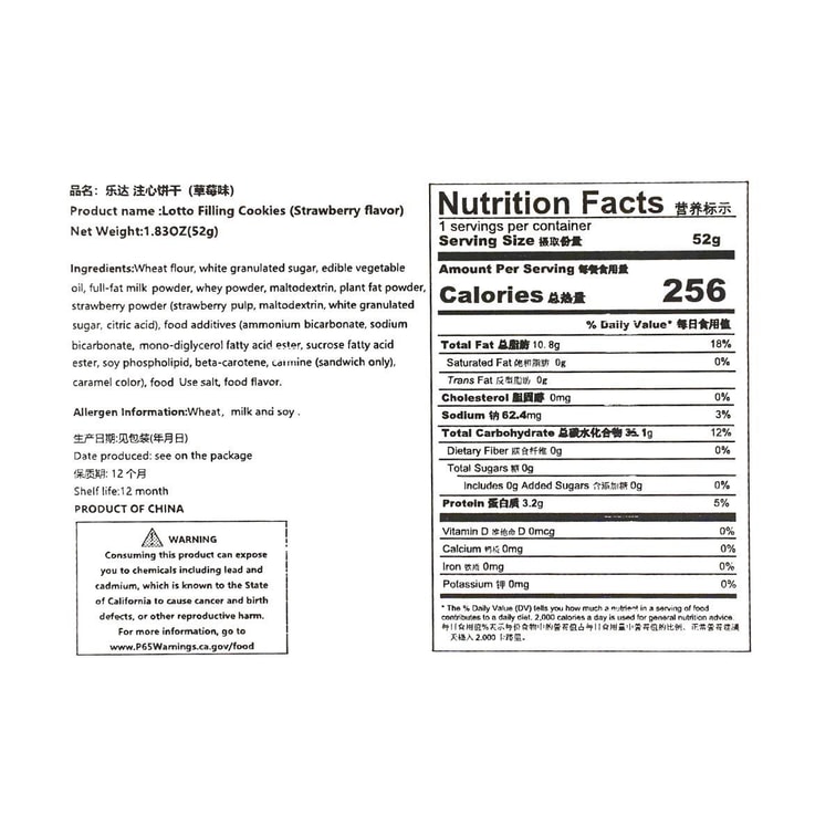 *免责声明:本页面所展示的营养成分信息来自商品包装,仅供参考。因包装版本、语言或拍摄方式不同,内容可能存在偏差或显示不完整,请以实际收到商品包装为准。如对成分、过敏原或适用人群有疑问,建议在使用前仔细阅读包装说明,或联系客服获取帮助。