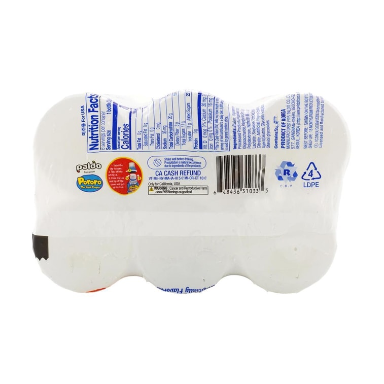 韩国PALDO八道 PORORO啵乐乐低糖果汁饮料 儿童饮品 牛奶味 235ml*6瓶