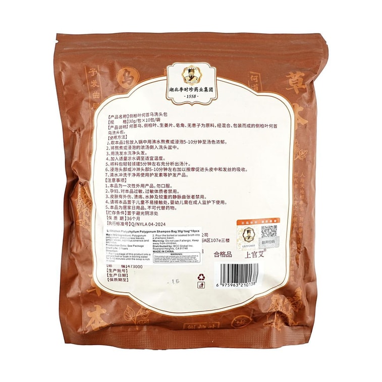 李时珍 侧柏叶何首乌洗头包 头疗药包 中药养发 洗发中草药 10袋/包 清洁滋养头皮 增发密发