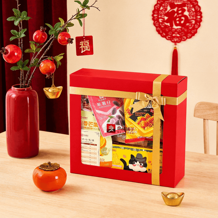 良品铺子 臻品礼盒 猫咪饼干琥珀核桃仁蜜饯素毛肚 10款入 1.06kg 【春节年货礼盒】
