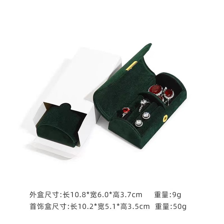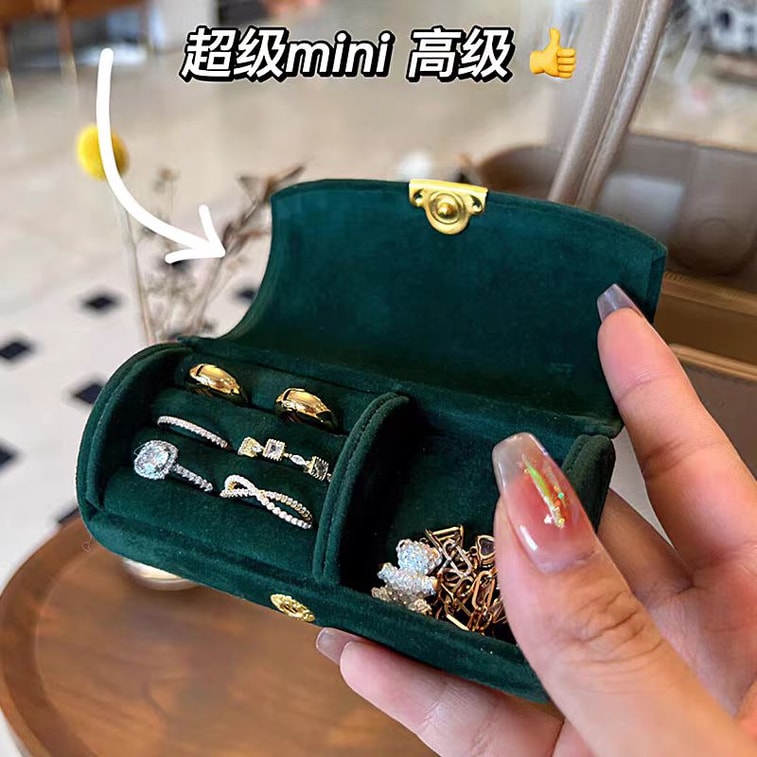Fancy Jasmine 轻奢精致迷你首饰收纳盒 1盒装绿色 出差旅行便携戒指项链珠宝丝绒饰品盒 | 亚米