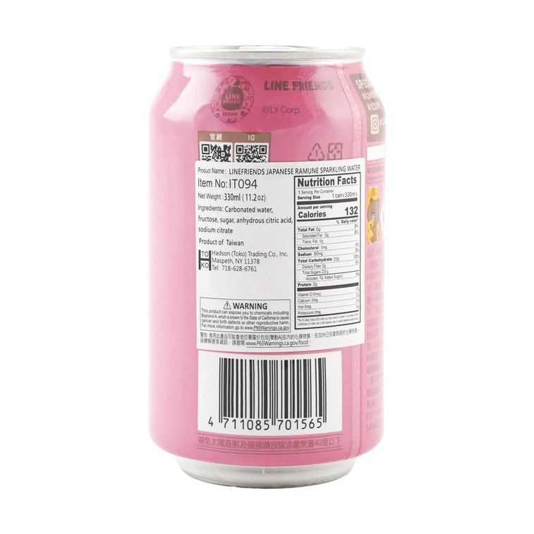 台湾HIGH UP嗨啊xLINE FRIENDS系列 日系弹珠气泡水 原味 330ml