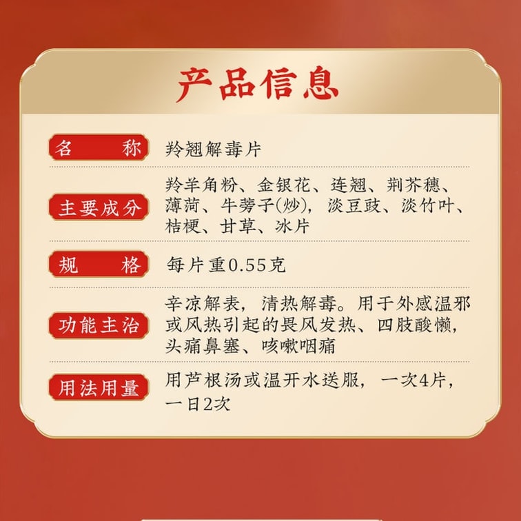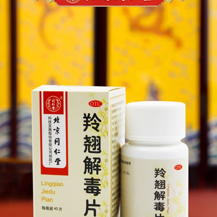 【中国直邮】 北京同仁堂 羚翘解毒片 辛凉解表 清热解毒 用于发烧鼻塞止咳头疼咽痛 40片/盒
