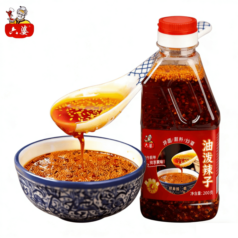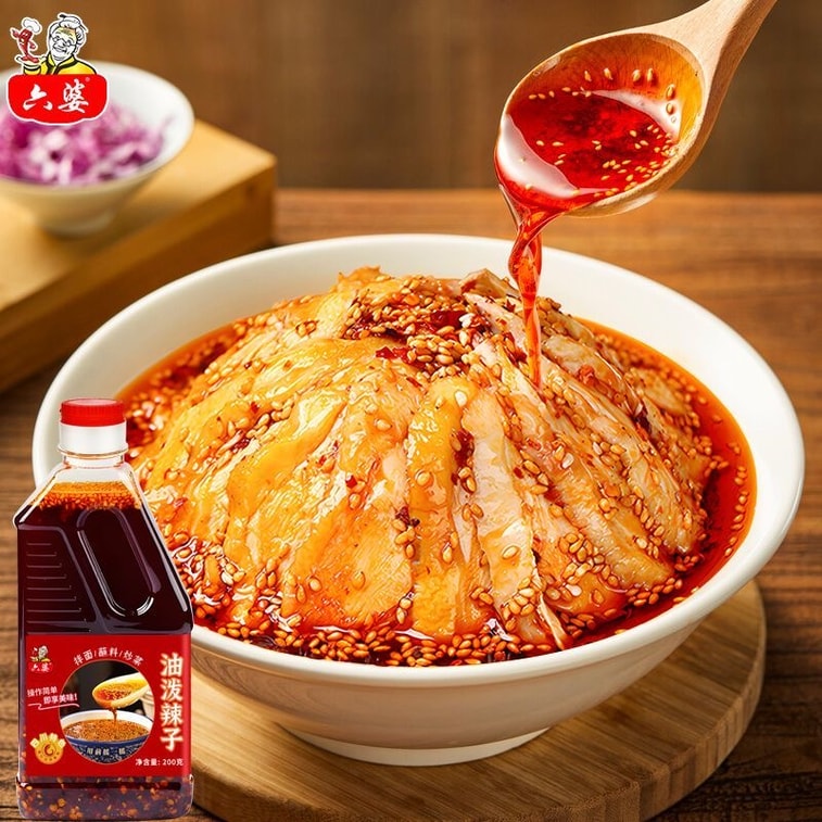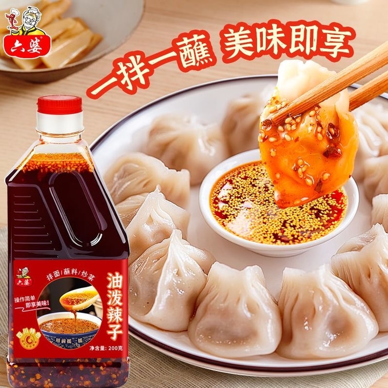 【中国直邮】 成都六婆 六婆油泼辣子 1瓶200g 四川红油辣椒油 香辣拌面 饺子调料