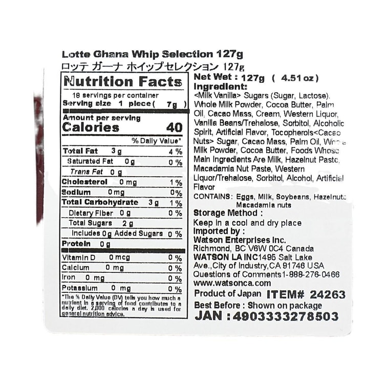 日本LOTTE乐天 GHANA加纳 香草牛奶+可可坚果夹心巧克力 127g【季节限定】